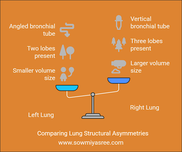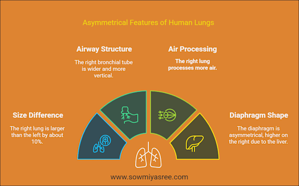 - Air processing: The right lung processes more air, creating a naturally uneven airflow
