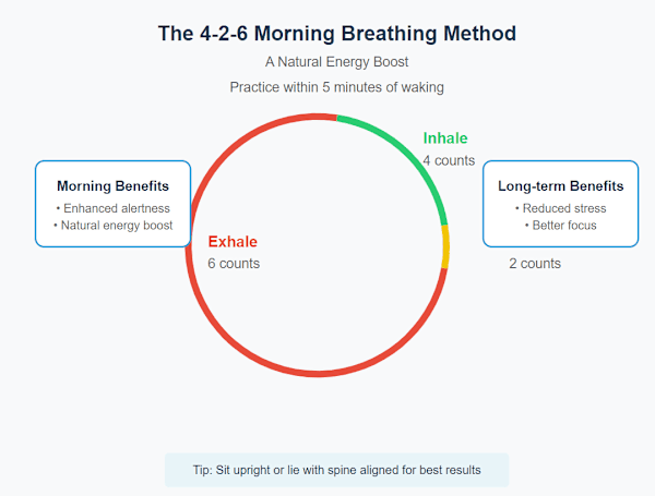 Based on these findings, researchers have identified an optimal breathing pattern for morning activation. The pattern, known as 4-2-6 breathing, has shown remarkable results in clinical trials: