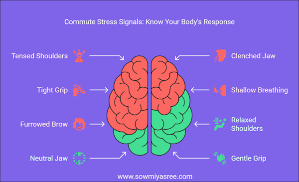 Most people don't realize how their bodies physically respond to the anticipation of traffic. Your breathing might become shallow, your muscles tense, and your thoughts race – all before you've even encountered a single red light or crowded train car.