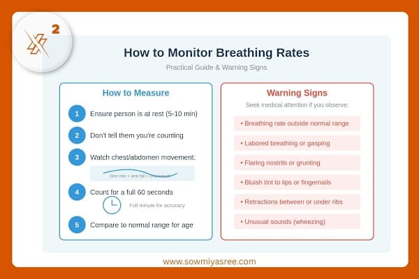 Accurately monitoring respiratory rates is a simple yet valuable skill for respiratory health assessment. Here are expert-recommended approaches for breath counting and measurement: